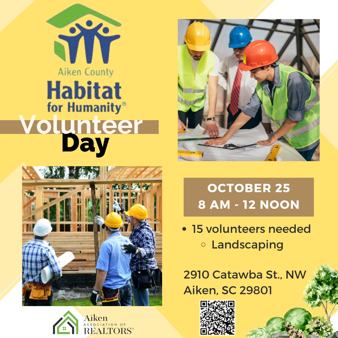 Join your AAOR colleagues to make a tangible difference in Aiken County! Spend a powerful morning giving back during our Habitat for Humanity Volunteer Day. We need 12+ volunteers to help with essential work, primarily landscaping, which is one of the final touches that transforms a house into a home. This is a great opportunity to network with fellow members outside the office while fulfilling the REALTOR® mission to support homeownership in our community. No experience needed—just a willingness to work and have fun!